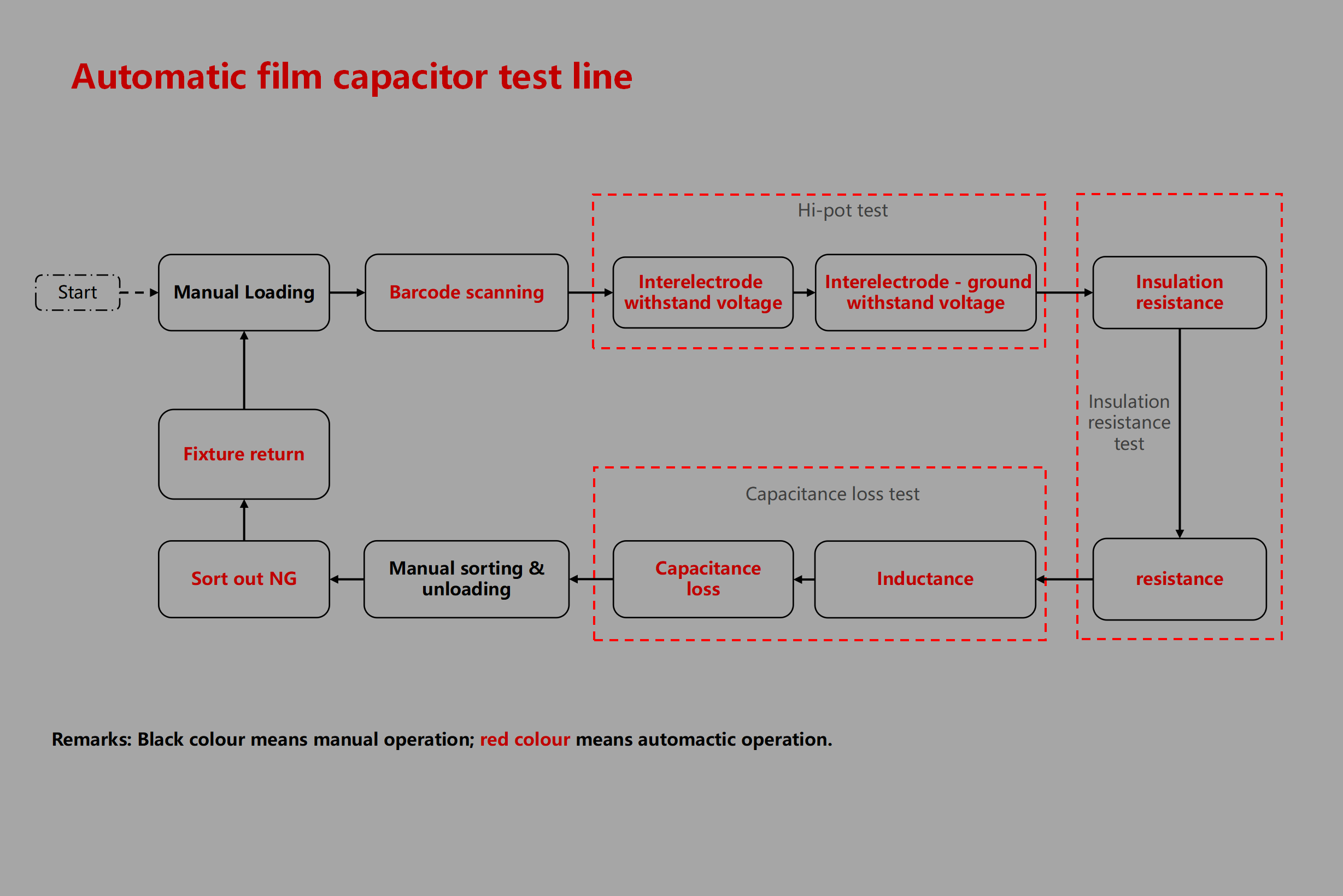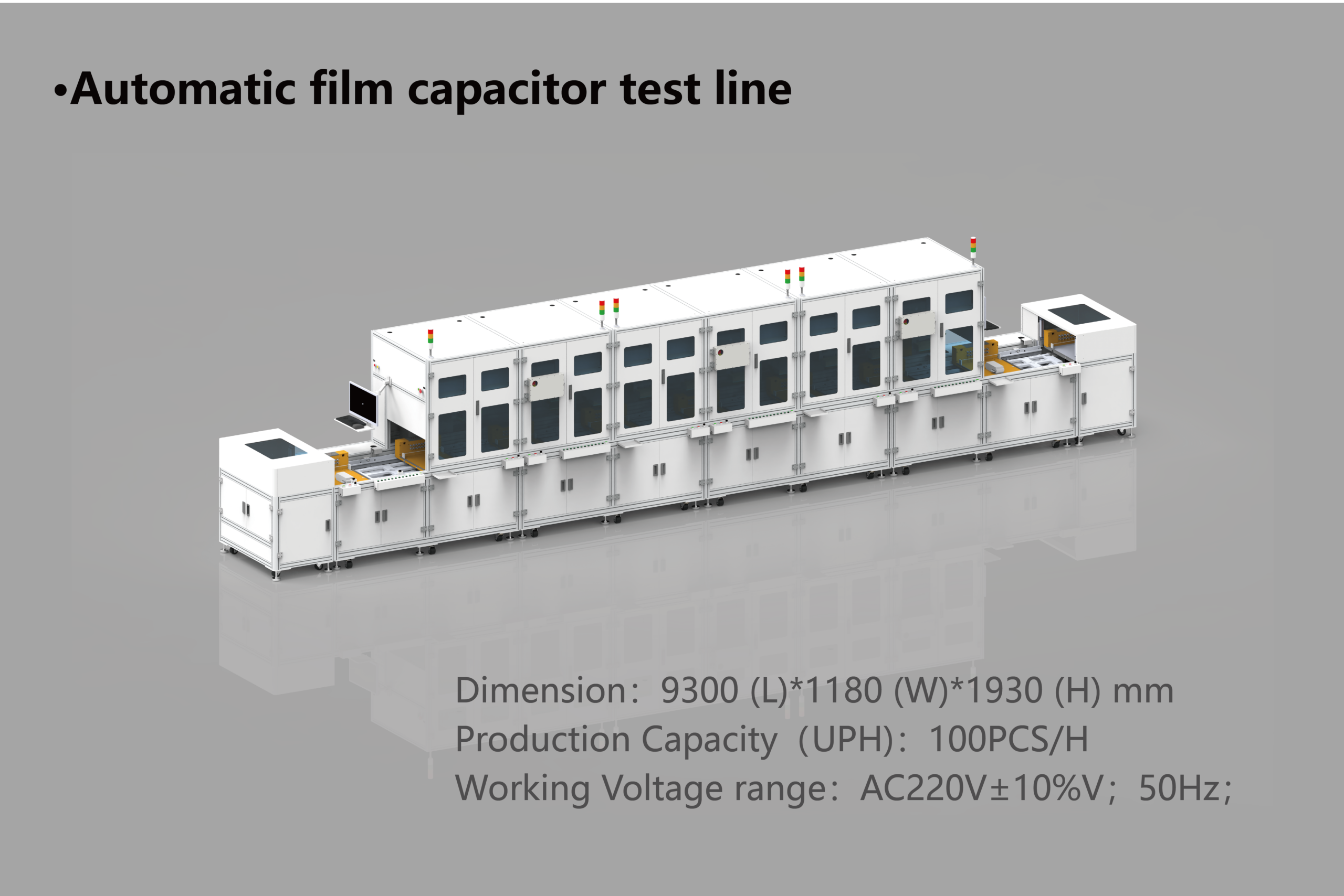 This equipment is a fully automated test line for film capacitors, specifically designed for performance detection and quality verification of automotive-grade capacitors. Integrating multiple tests including withstand voltage, insulation, and capacitance, it can process 100 pieces per hour, ensuring each capacitor meets automotive quality standards.