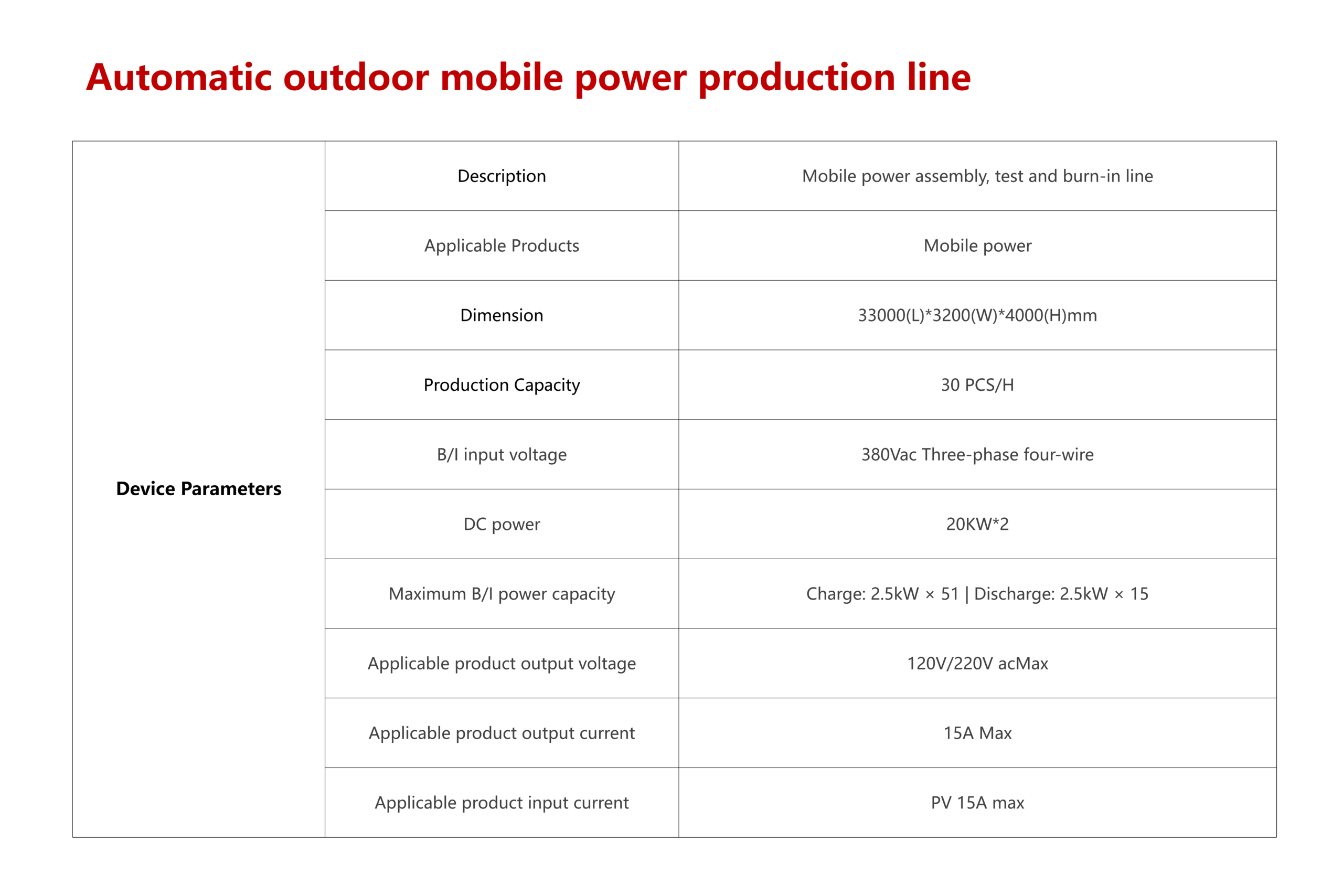 Automatic outdoor mobile power production line