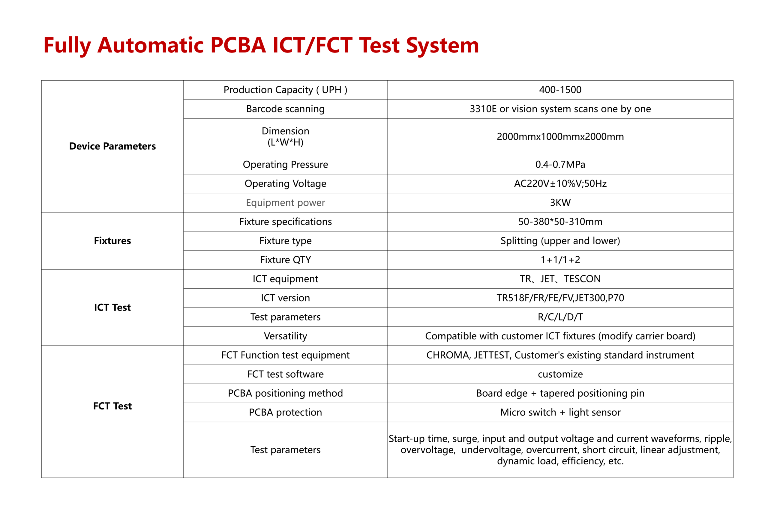 ●Automatic ICT test + automatic FCT test, dual or multi-position station design to save manpower.