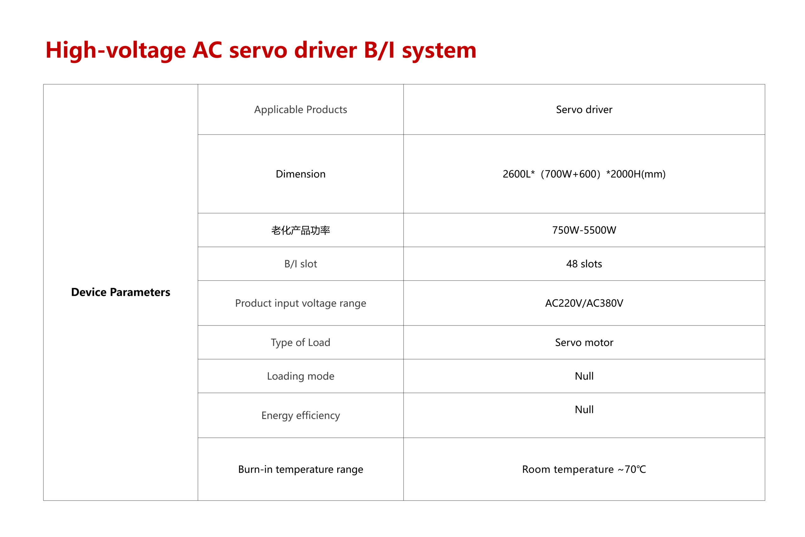 This system is designed for high-voltage AC servo drivers. It conducts loaded burn-in tests on 48 units simultaneously at temperatures up to 70°C, comprehensively evaluating performance and stability under continuous full-load operation.