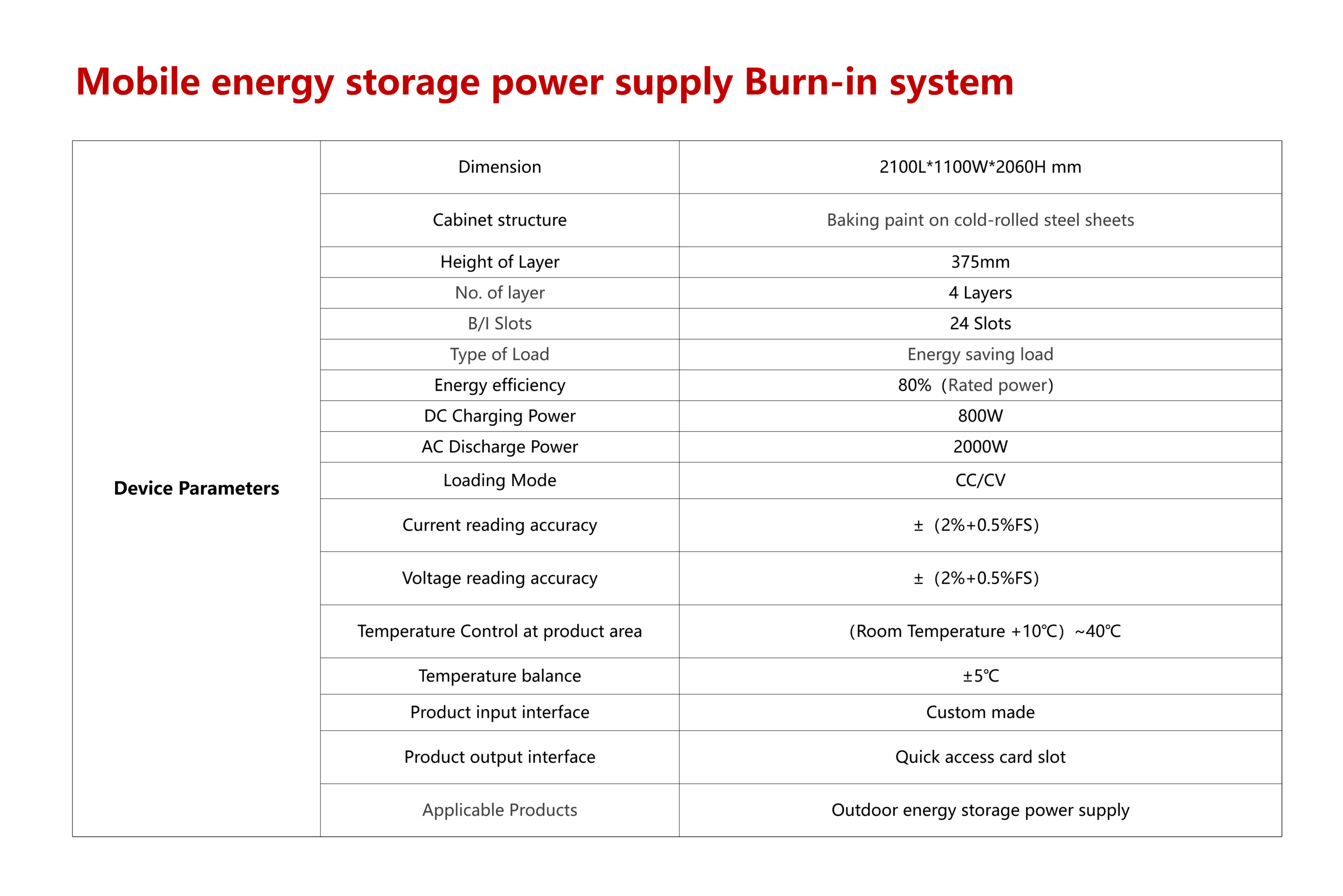 This system is designed for outdoor portable power stations. It performs charge-discharge cycle tests and temperature rise verification to comprehensively evaluate performance stability and safety reliability under continuous operation.